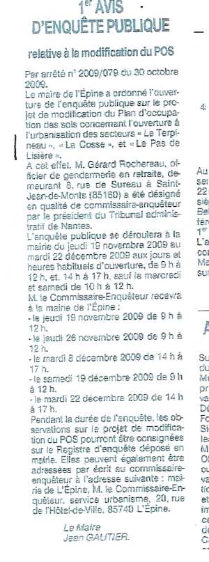 Trois PLU (Noirmoutier, Barbâtre, l’Épine) doivent être mis en place cette année; ils seront précédés d’une enquête publique. Nous allons essayer de distriber aux habitants de ces communes un document reappelant ce qu’est une enquête publique dans le cadre d’un Plan Local d’Urbanisme (PLU) et pourquoi il est important d’y participer.