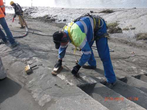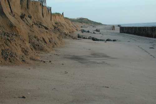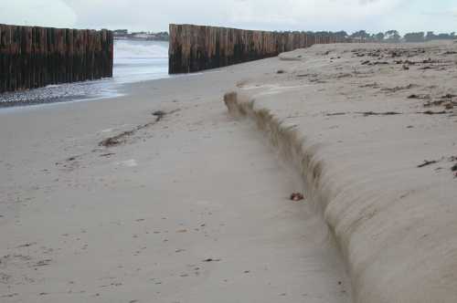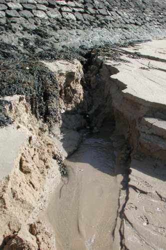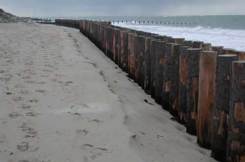- On peut douter de la solidité des poteaux verticaux sous les coups de boutoir de vagues de tempête. En effet, il suffirait d’un début de démantèlement ou de déchaussement pour que les madriers s’échappent de la rainure en créant des perturbations considérables à toute la structure.