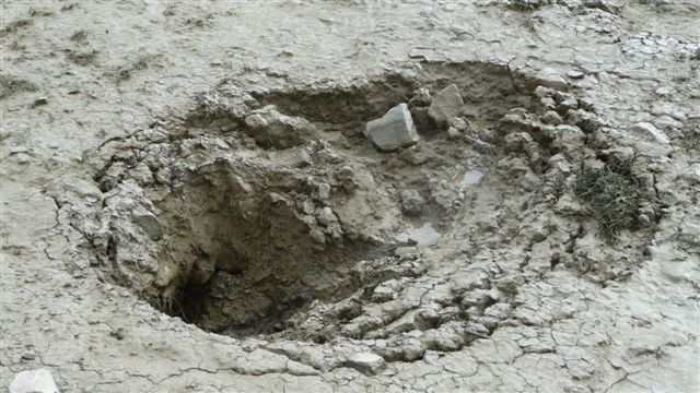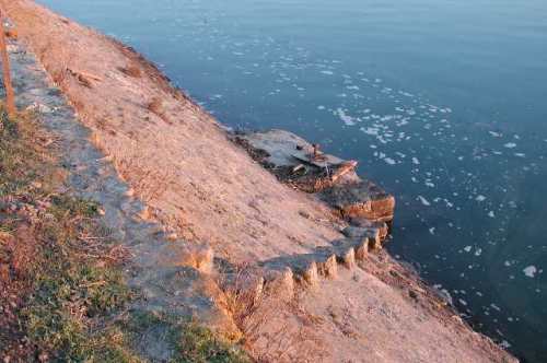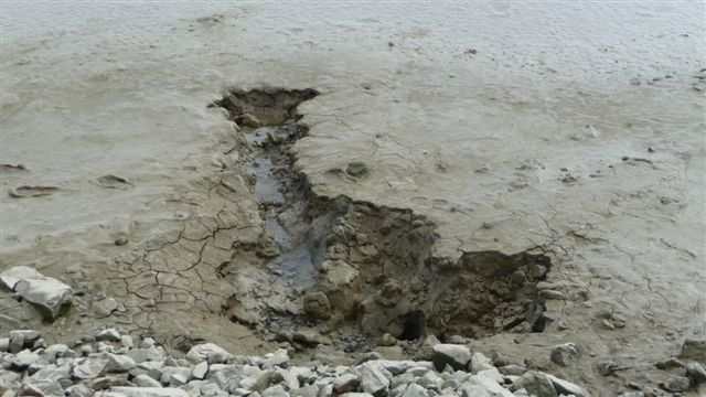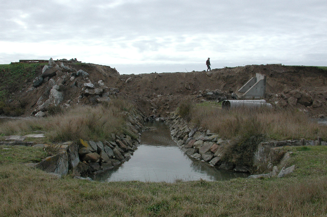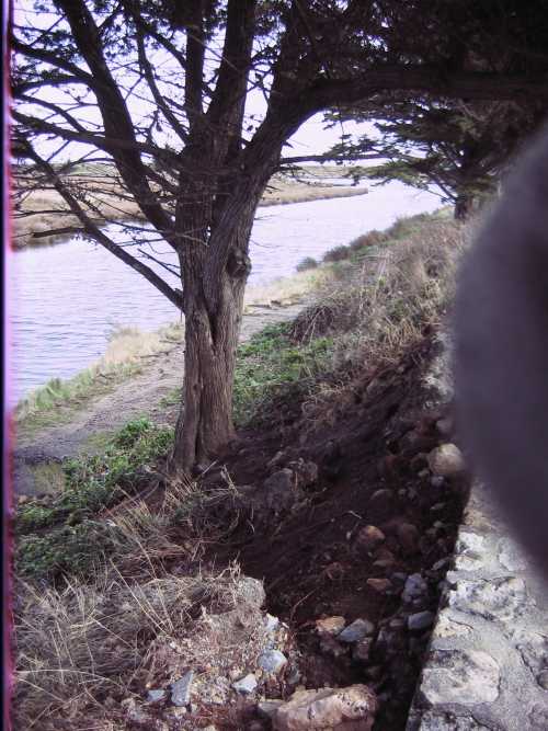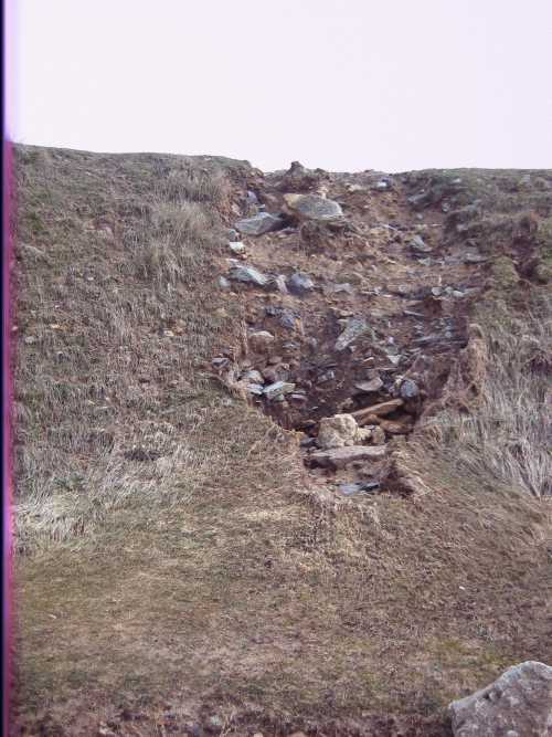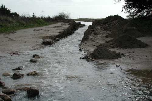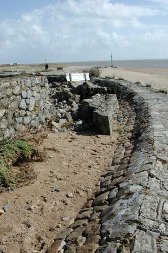 Incroyable mais vrai, juste au nord de la porte principale il existe une barrière totalement ouverte créant un vide sous lequel les flots de tempête s’engouffreraient sans coup férir tout simplement par contournement puisque aucun obstacle ne s’y opposerait ! Cette porte est une structure inutile parce qu’inopérante, à l’efficacité presque nulle puisqu’il existe toujours un manque de continuité de la crête vers le nord.