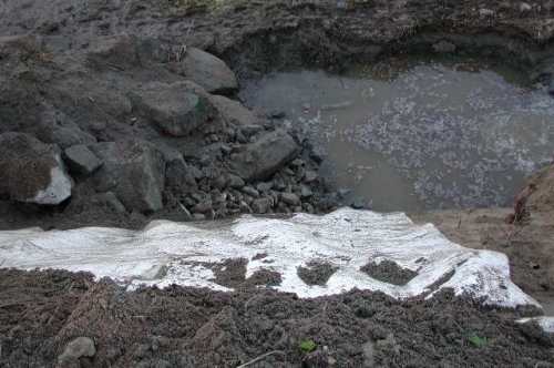 - Le madrier à la base doit pouvoir reposer sur un sol ou un plan horizontal stable et résistant pour limiter au maximum les passages d’eau et assurer un minimum d’étanchéité. Sinon, une érosion régressive rapide pourrait perturber l’effet souhaité de cette structure qui est d’abord de stopper ou du moins limiter les passages d’eau.