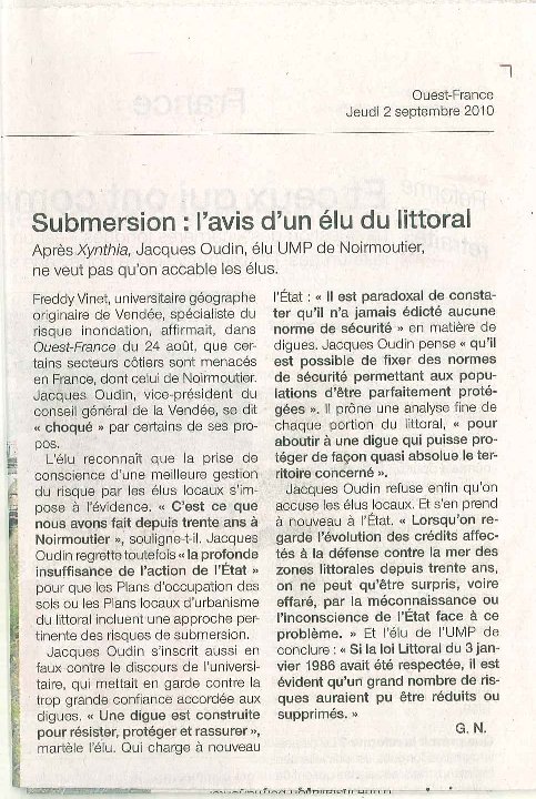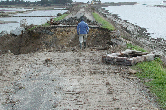 - Sinon, on pourrait rapidement assister à la destruction rapide de la structure dans son ensemble et le lotissement en zone inondable en contrebas – atteint lors de « Xynthia » – situé à quelques dizaines de mètres connaîtrait de nouveau les affres d’une inondation.