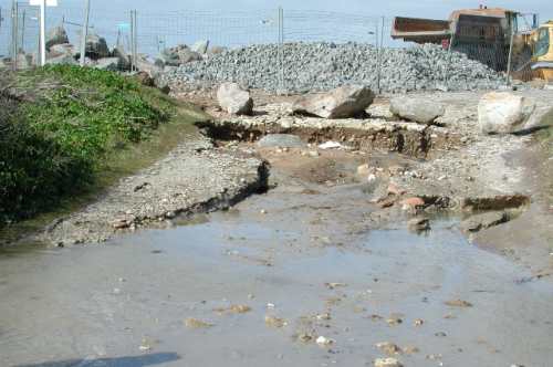 Zone submergée lors de la tempête, rien n’a changé sauf pour les réparations effectuées sur le mur de clôture partiellement détruit de la propriété.